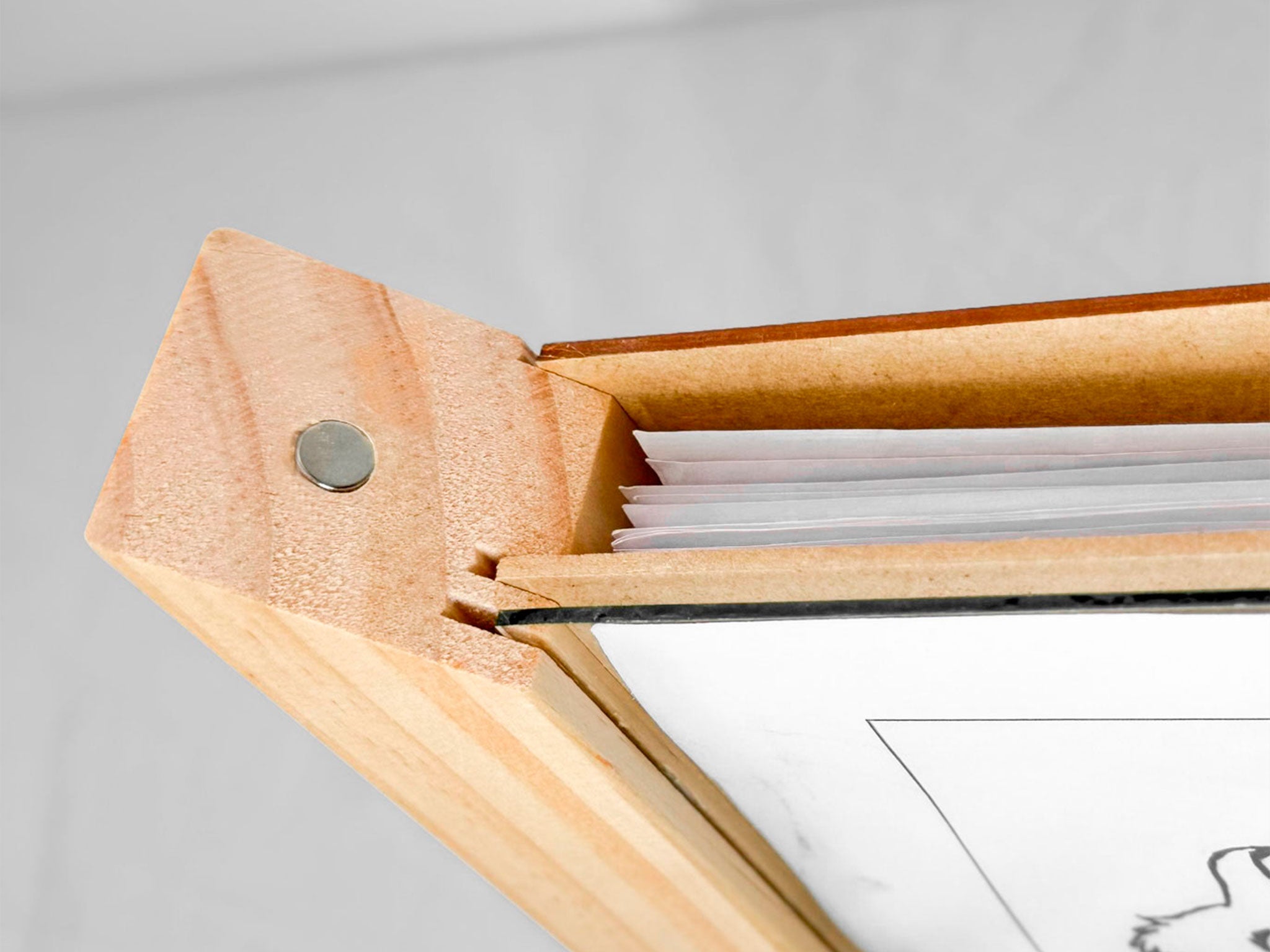 Mon Âme, el cuadro para dibujos infantiles, es la solución perfecta para las numerosas obras de arte que crean nuestros niños. La creatividad infantil es ilimitada. El cuadro tiene espacio para más de 100 dibujos. El sistema intercambiable es facilísimo de usar, giratorio y se cierra magnéticamente. Fabricamos artesanalmente en Perú junto a carpinteros locales.